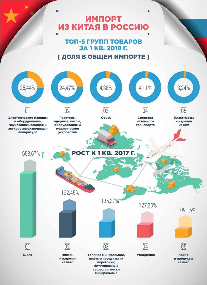 Торговые отношения между Китаем и Россией значительно активизировались в последние годы. Рассмотрим основные категории товаров, которые Китай экспортирует в Россию, и их значение для российской экономики.
