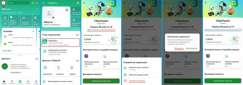 - Просмотр истории платежей: "История операций" → фильтр "Подписки"