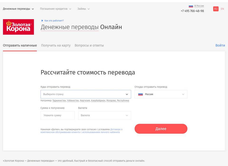 - Запомните или запишите контрольный номер перевода