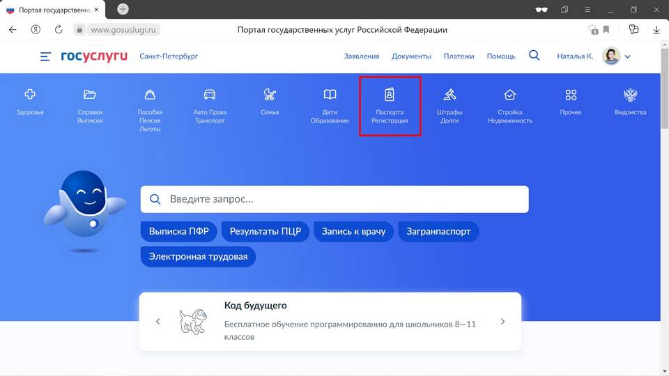 - Выберите услугу "Получение паспорта гражданина РФ"