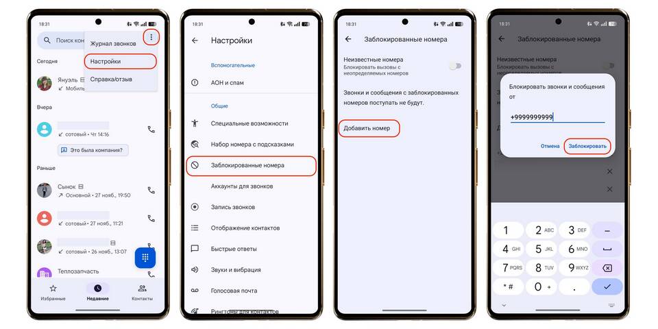 По номерам телефонов | Заблокировать номера в разделе "Заблокированные пользователи" |