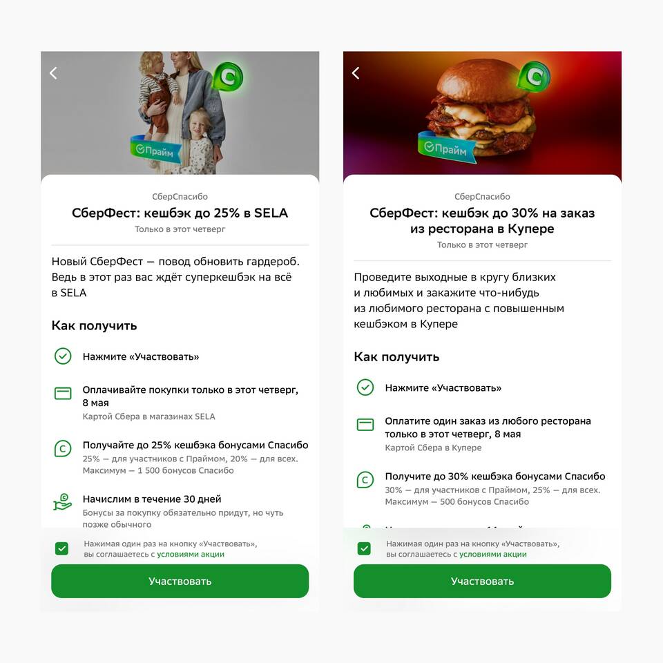 Актуальный список участвующих заведений и специальные предложения можно найти в мобильном приложении СберБанк Онлайн или на официальном сайте банка в разделе "Преимущества".